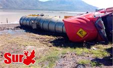 | Oficiales de la Delegación Regional de la Unidad Estatal de Protección Civil se trasladaron al kilómetro 16 de la autopista Guadalajara-Colima, sitio en el que se registró la volcadura de una unidad que transportaba combustible. |